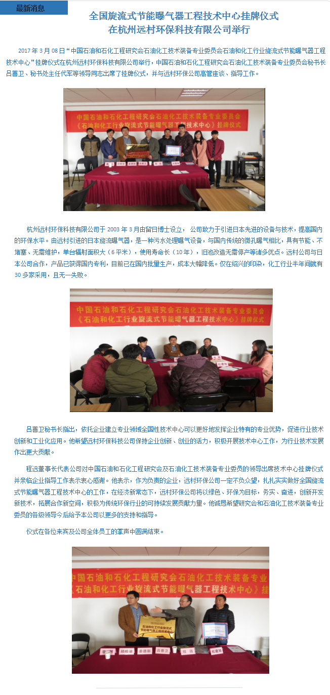 全國旋流式節(jié)能曝氣器工程技術(shù)中心掛牌儀式